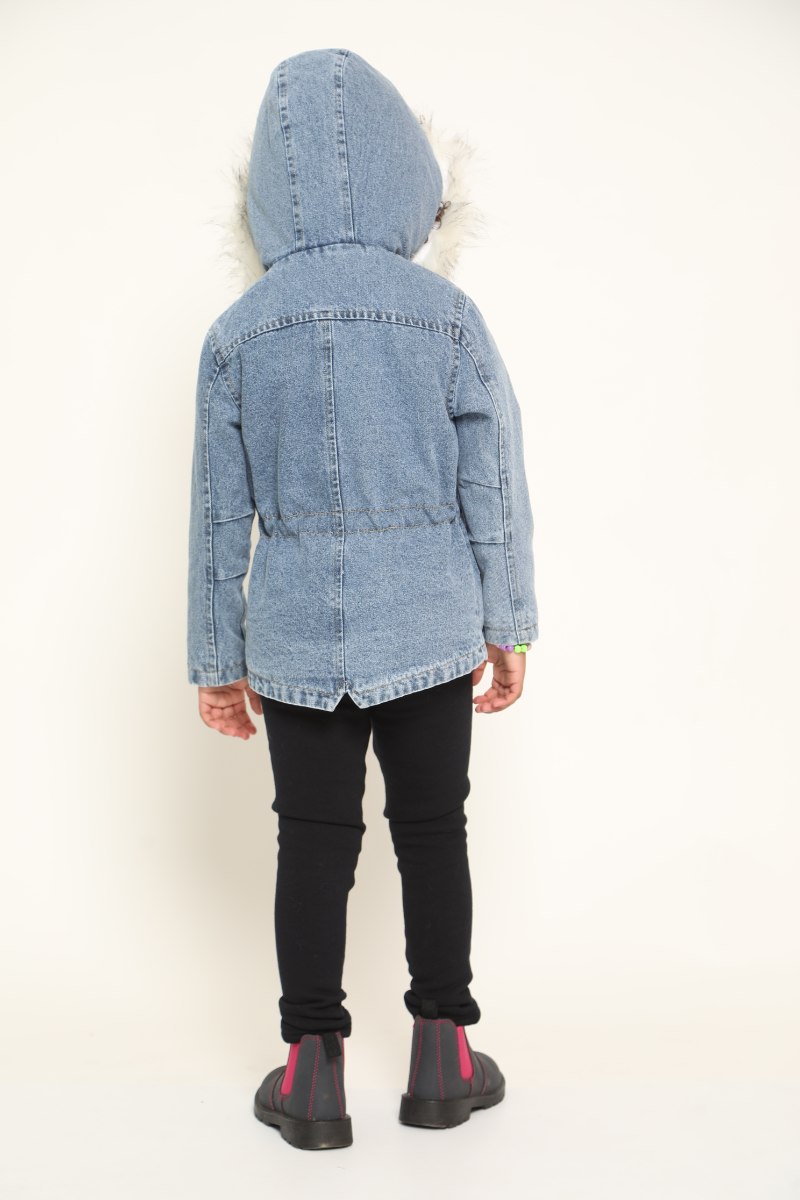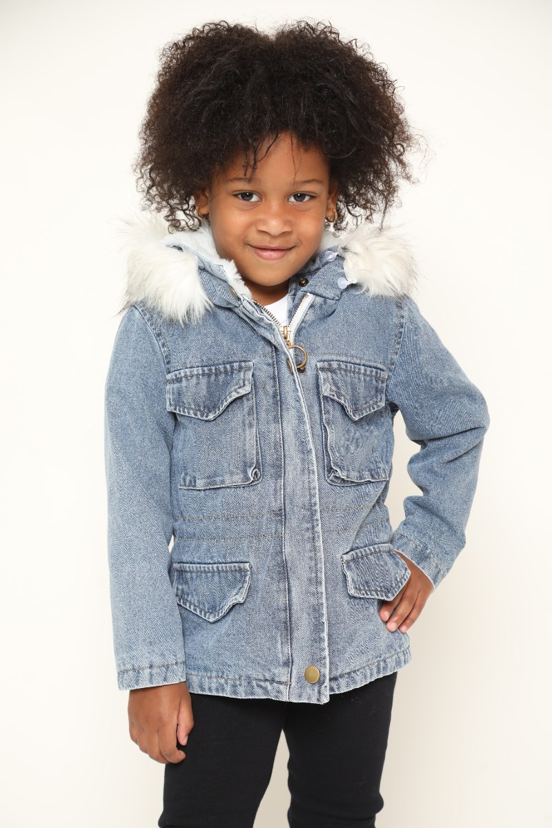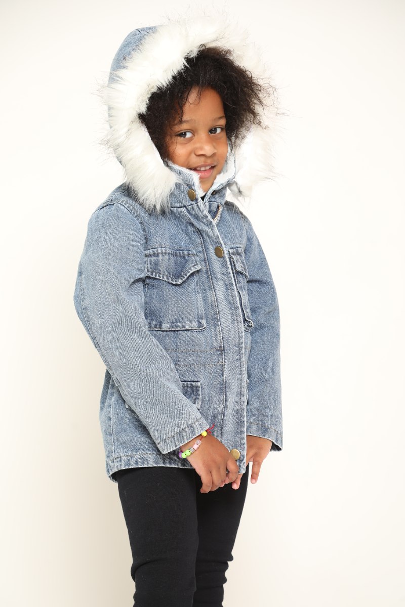 ג'קט ג'ינס פרווה בנות לבן