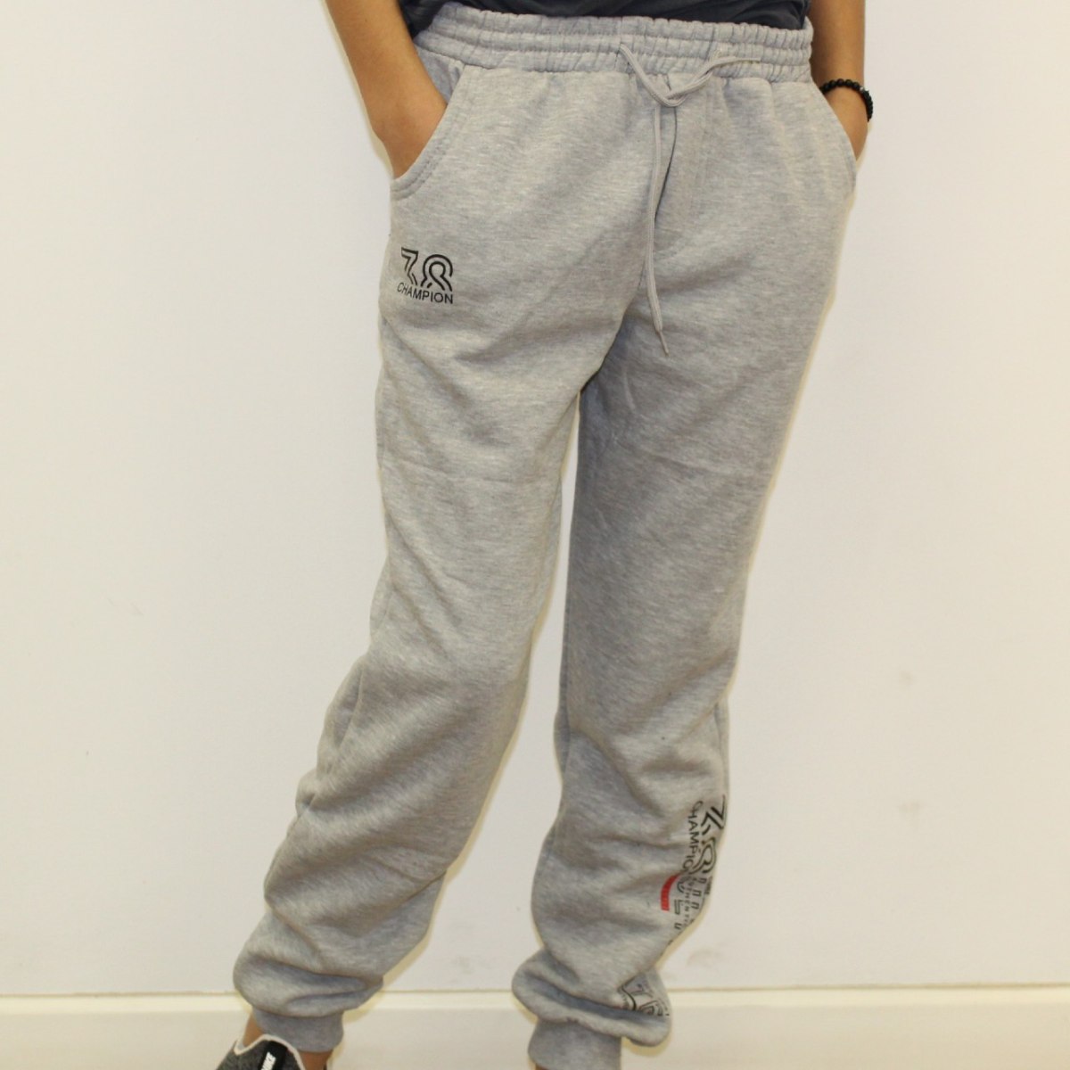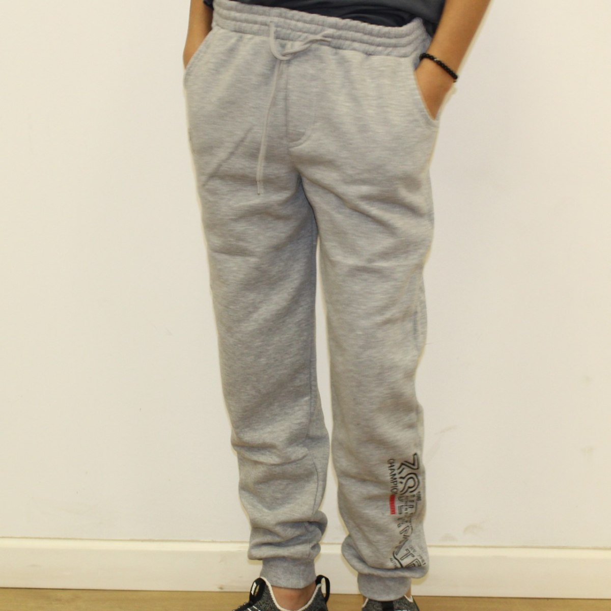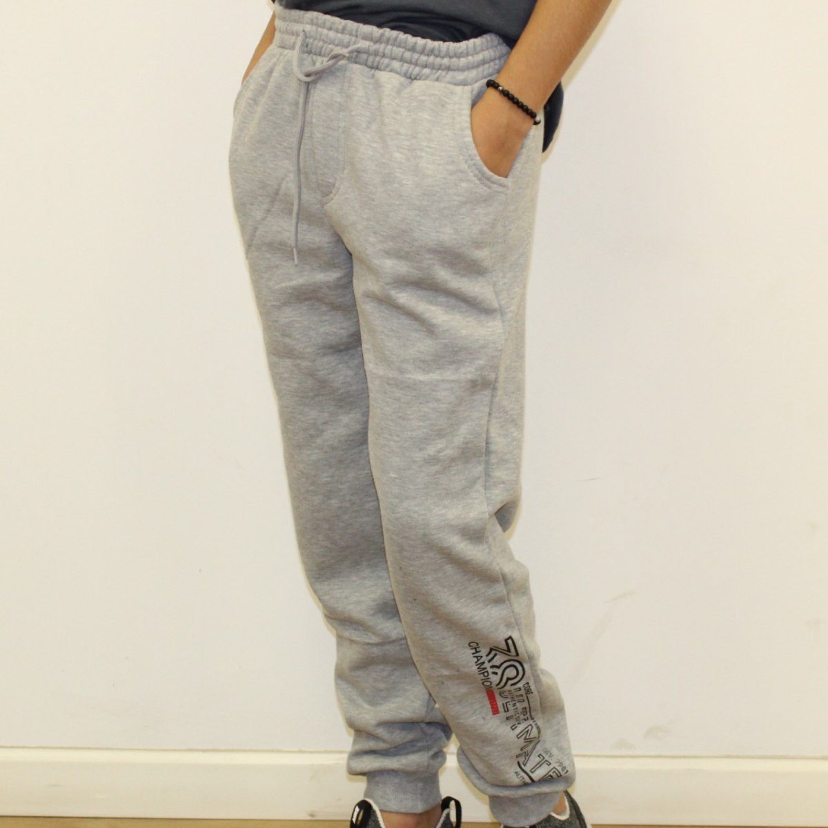 מכנס פוטר הדפס רגל 38 אפור בהיר
