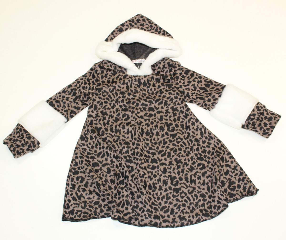שמלה מנומרת שילוב פרווה חום כהה